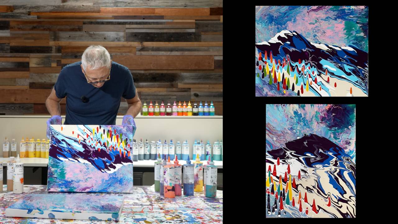 Watch your landscapes come to life as Simon Bull teaches you how to stretch and drag paint across the canvas to create flowing, dynamic images. In “Slopes,” you’ll explore how motion and direction in your brushwork can turn simple strokes into expressive slopes, hills, and abstract forms with depth and energy.