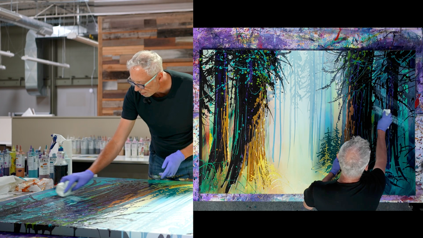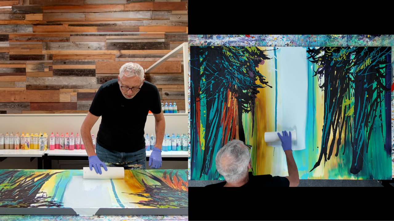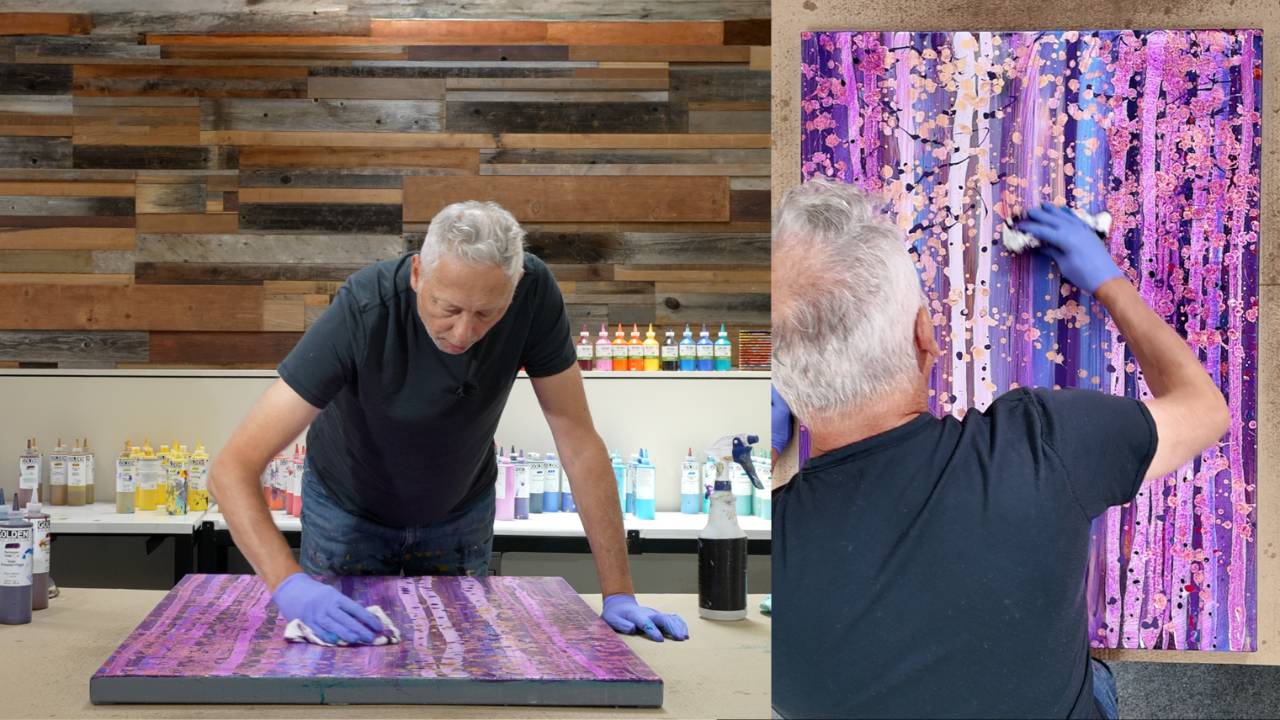 Step into the woods with Simon Bull as he guides you through painting a dense, vibrant aspen tree forest using his signature tools and techniques. In "Aspen Grove," you’ll learn how to sculpt trees and foliage using paper towels and a special Little Piggy Pigments pour tool that adds depth, flow, and spontaneity to your canvas.